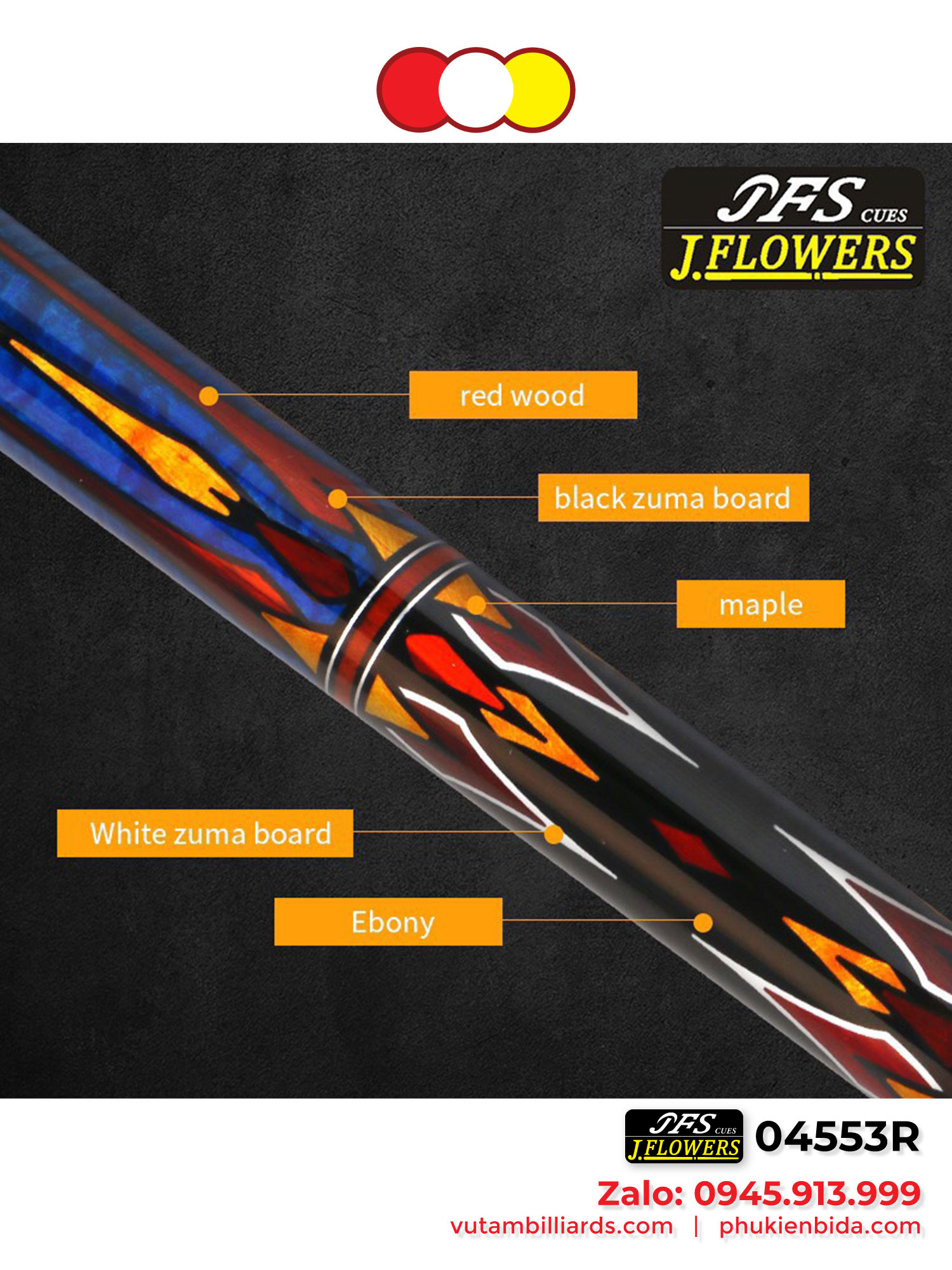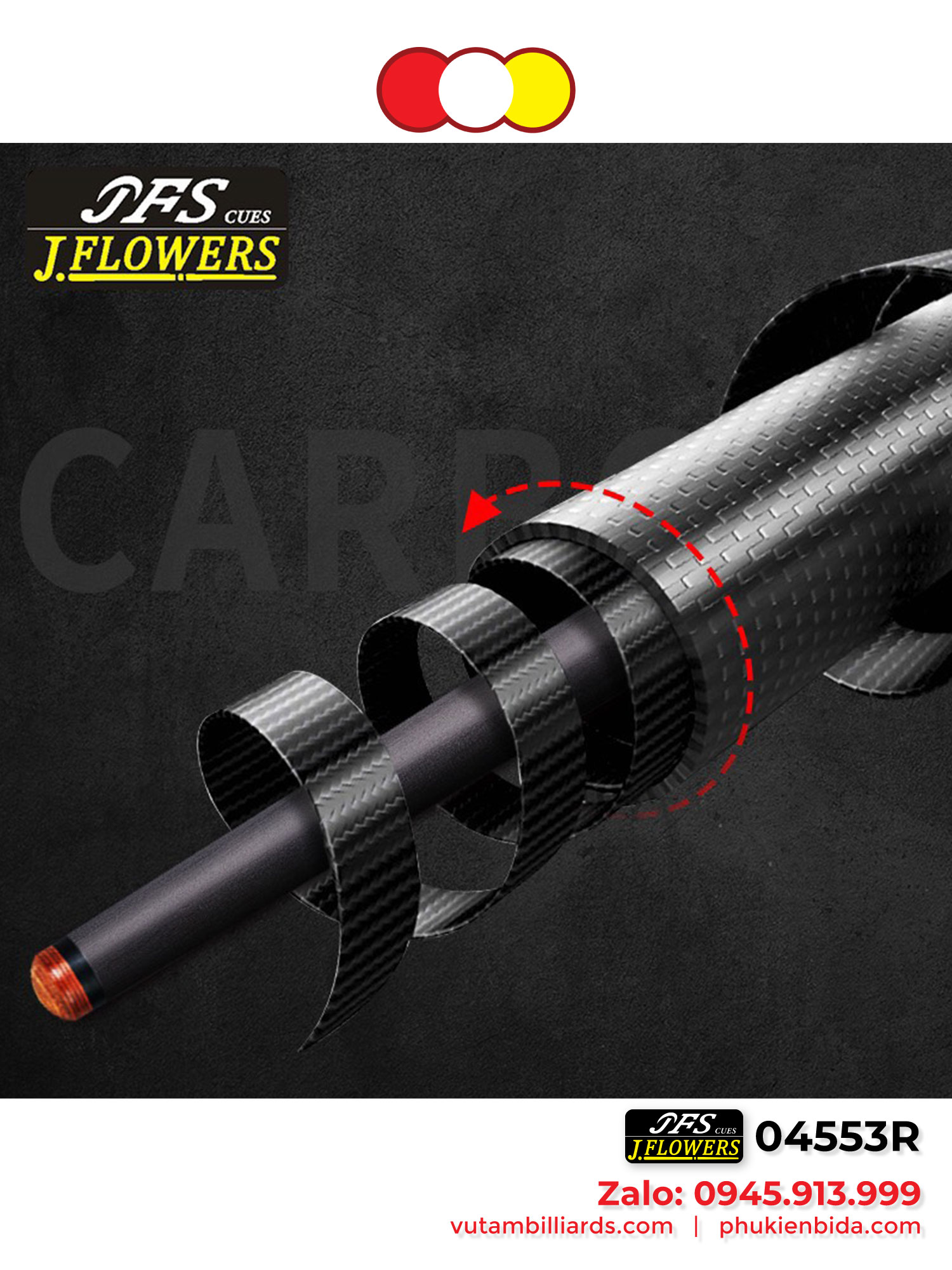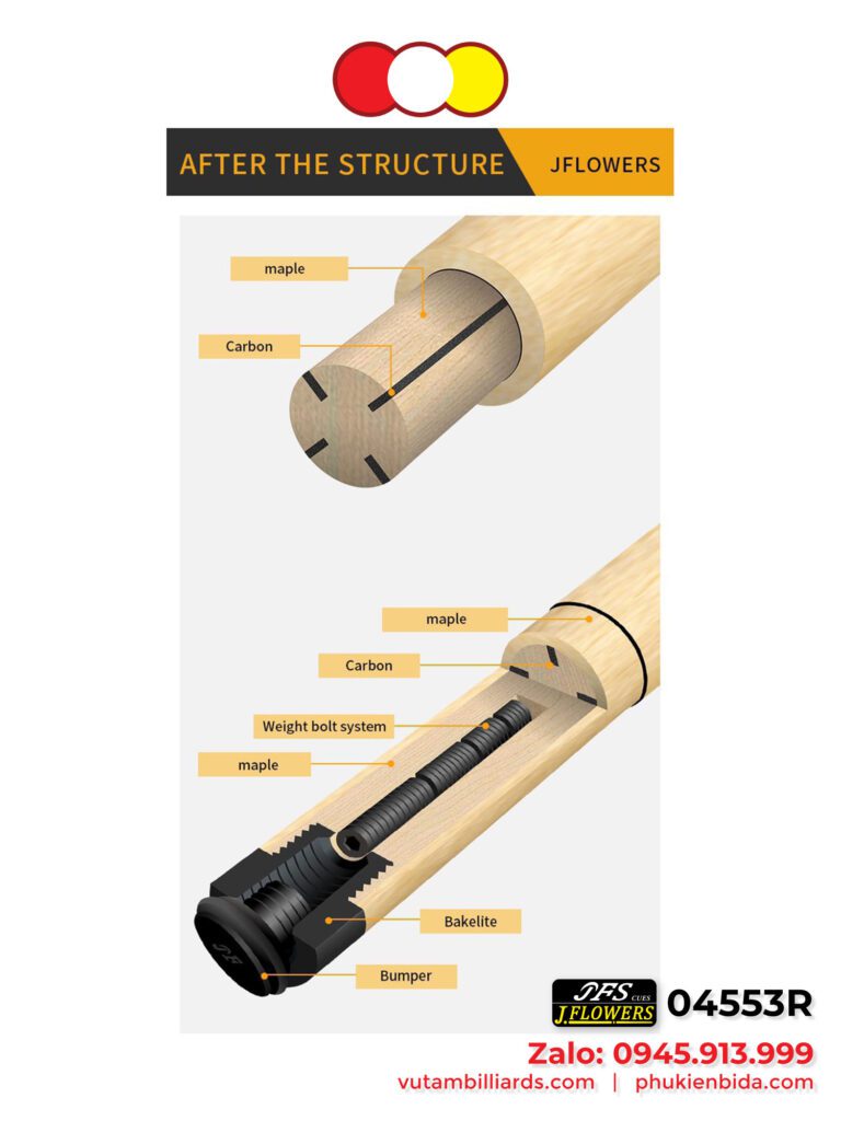 Cơ Bida 3 Băng Ngọn Full Carbon JFlower | Công nghệ Mỹ